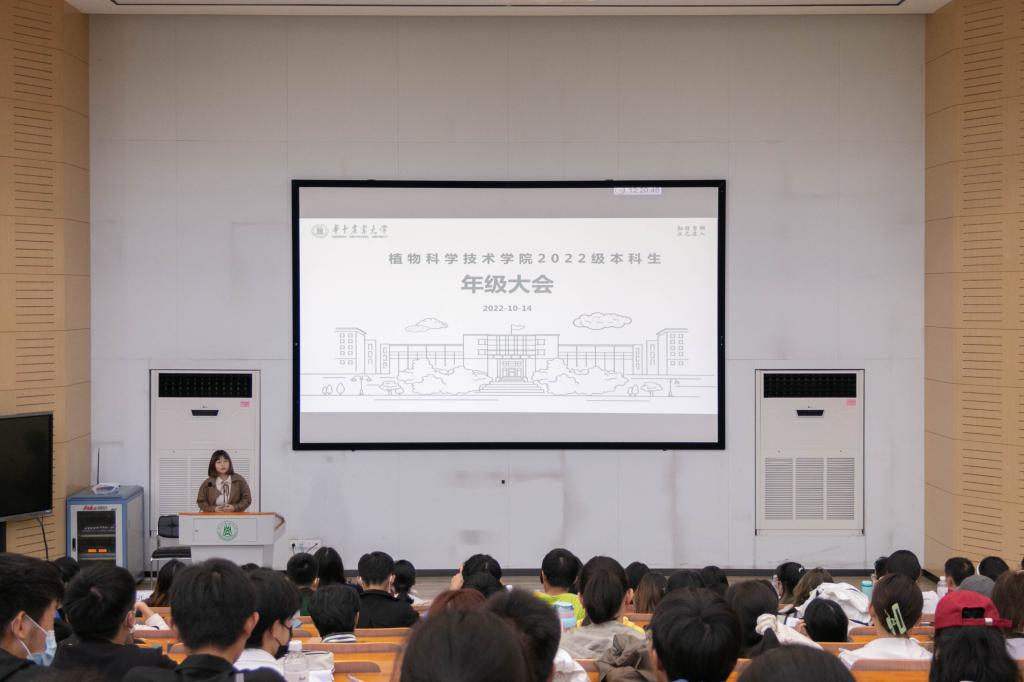 10月14日中午,植科院2022级本科生第一次年级大会在三教S1报告厅举行。植科院汪波副教授、教务老师陈萌、曾令子、李天杰及22级全体本科生参加会议,会议由2022级辅导员张露主持。