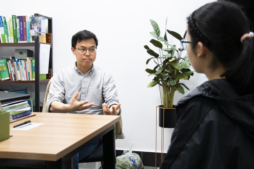 座谈会伊始,汪波对来访的同学表示欢迎,并讲述了他自己的求学、科研和从事班主任的经历。谈及他的科研经历时,汪波分享到,求学途中研究方向改变后,自己突然发现周围人都很优秀“刚开始觉得压力很大,自信心也受到打击。但是我主动走出自己的舒适圈,坚持挑战自己后,精神状态比之前有明显的提高”,他继续说道:“我之所以严格要求我的员工,要求他们始终抱有挑战自我的决心,是因为我自己曾走过弯路,不希望他们再重蹈覆辙而遗憾后悔”