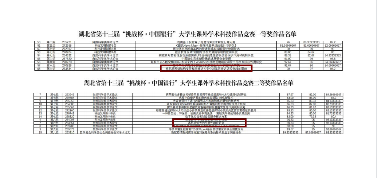 公司王茂军教授指导的2018级龙跃轩个人项目围绕《棉花基因组结构变异和三维结构变化对基因表达调控分歧的影响》进行汇报展示,获评省一等奖;公司熊栋梁教授指导的2018级陈琳、罗婉珍团队项目围绕《水稻对低光的可塑性响应研究》进行汇报展示,获评省二等奖。