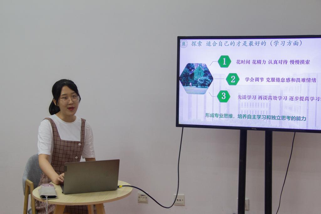 来自农学1703班的杜逸飞用“探索”、“选择”和“尝试”三个词形容她的老员工活。她通过分享自己在学习和科研上的探索历程,向大家充分地阐述了“适合的才是最好的”这一人生感悟。令她骄傲的不仅仅是耀眼的成绩,还有她对员工工作始终如一的坚持。她表示,员工工作远不止表面上的光鲜,更多的是背后的奔波和付出,但她依然选择继续进行员工工作,“爱我所行,行我所爱”便是她的选择。大学期间,她尝试以农科背景参加创新创业大赛,提出“半亩方塘农田景观设计项目”并最终荣获湖北省银奖。她表示,“在这个过程中,我真正感悟到过程比结果更重要。”