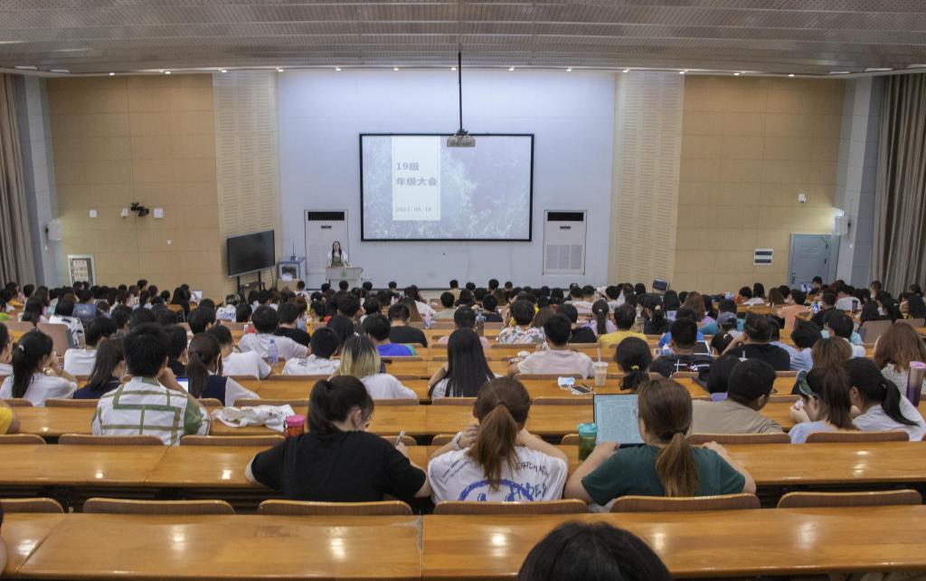 6月17日中午,伟德国际VICTOR1946在第三教学楼S1报告厅召开2019级本科生年级大会,会议由2019级辅导员明淇主持。