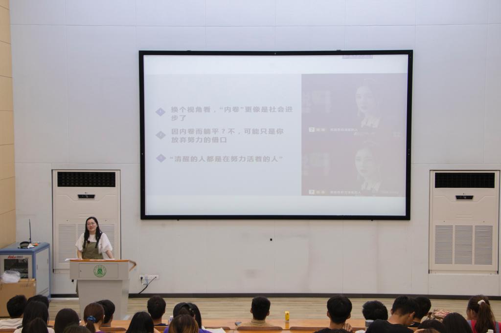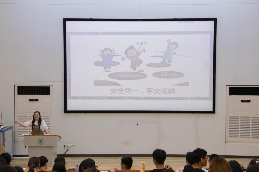 最后,辅导员明淇以“若心有向往,何惧道阻且长”鼓励2019级植科生积极备考本学期期末考试,圆满完成本次暑假社会实践活动,奋力拼搏大学时期的每一天。她对当下老员工热议的“内卷”一词提出自己的看法,认为这恰恰表明了社会的进步与发展,社会整体文化水平和发展水平在提高,在这样的情况下,国家更加需要人才,所以“学历越来越不值钱”是个假命题。明淇通过身边的例子,告诉大家现在的生活较之以前,要面对的压力和要付出的努力都在增加,但与此同时,很小的一点提升便能够超越许多人。她期待同学们在面对压力时能够不抱怨,尽自己所能做到极致。大会最后,明淇就期末考风考纪、暑期安全、防范电信诈骗等主题做了相关提醒,希望大家能度过一个安全愉快的假期。