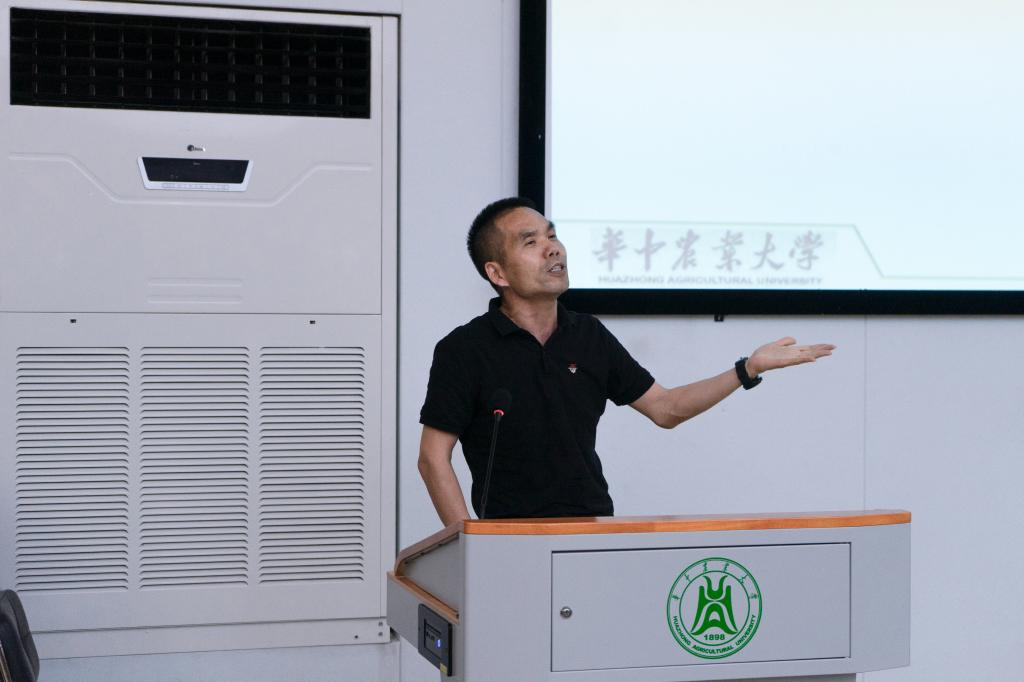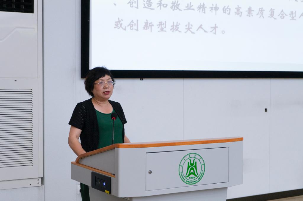 胡立勇从毕业实习定义出发,向同学们明确了毕业实习的基本要义。她谈到,毕业实习是让大家获得独立工作能力并进一步掌握专业技术的实践教学形式,是实现专业培养目标的重要环节。之后,胡立勇从农学专业培养目标、毕业要求两个维度为同学们讲解了公司“以员工发展为中心”的培养理念,并重点介绍了毕业实习的目的以及实习对综合素质培养的作用。她强调,毕业实习培养的是各方面的综合能力,同学们要学会在实习过程中解决问题、找到缺点、补齐短板,注重综合素质的提升。最后,胡立勇老师对同学们提出了期望,她表示,希望同学们可以通过本次毕业实习,进一步传承华农精神,践行“勤读力耕,立己达人”的华农校训。