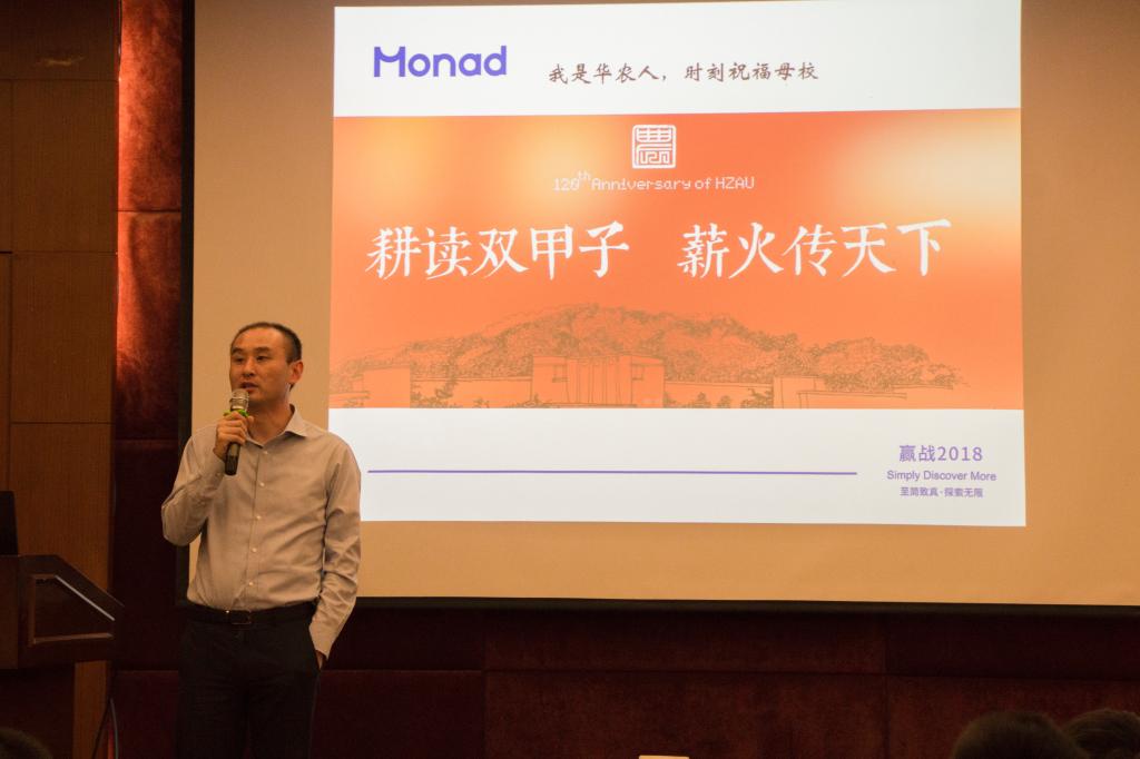 Finally, Yan Dongping introduced the relevant situation of Monad Biological Technology Co. Ltd., willing to boost college students' innovation and entrepreneurship with the alma mater.