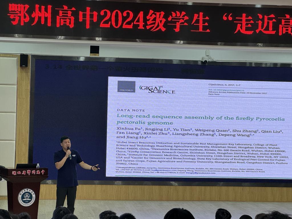 9月22日,公司赴鄂州高中开展“华农教授进名校”活动,付新华教授给200余名师生带来题为“寻找心中的萤火”的科普报告。