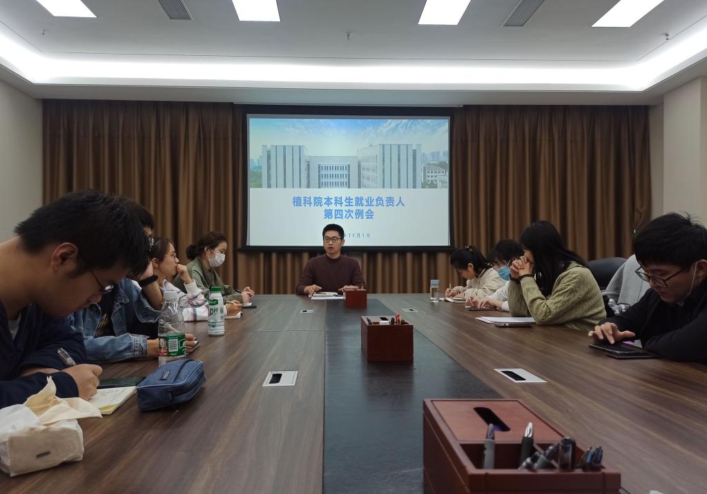 11月1日晚,植科院2022届本科生就业负责人第四次例会于第三综合楼B308召开,会议重点讨论了针对考研群体的培训计划和校园电动车安全问题,并提出相应解决措施。辅导员张涛主持会议,兼职辅导员陈鑫慧和全体2022届本科生就业负责人参会。