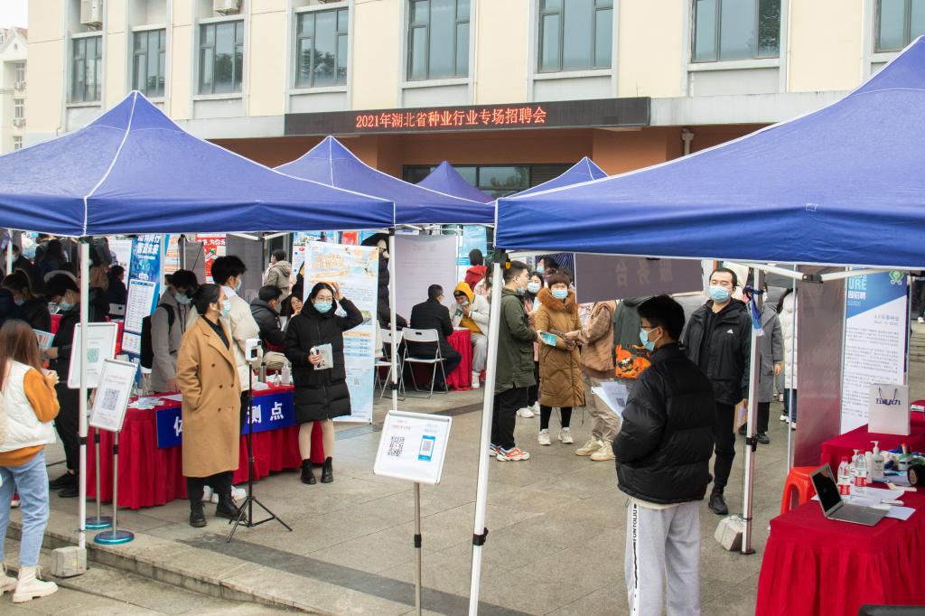 12月11日下午,由植科院联合公司本科生就业指导中心、继续教育公司举办的“2021年湖北省种业行业专场招聘会”在员工综合服务楼广场顺利举行。