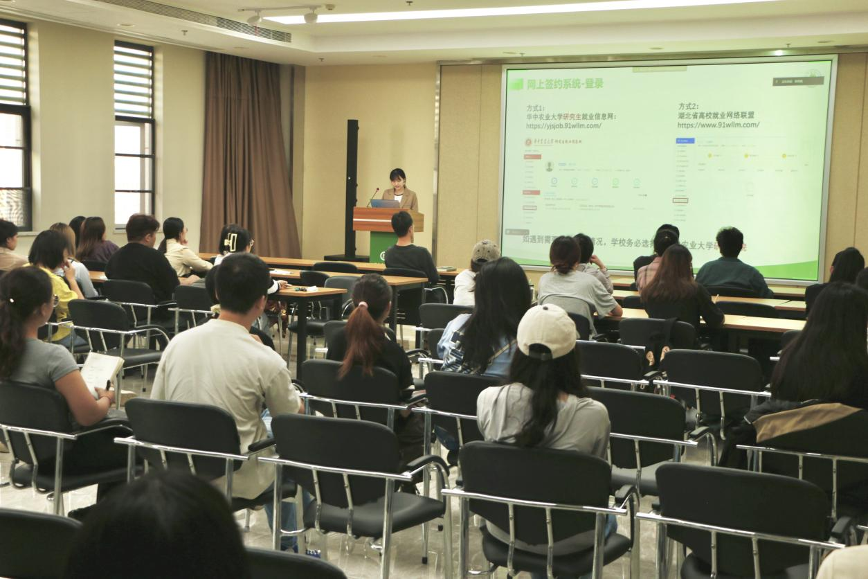 2024年10月18日下午,植科院2025届毕业研究生就业动员暨网签培训大会在第三综合楼A705召开,会议由辅导员任伟主持,200余名2025届毕业生线上线下参会。
