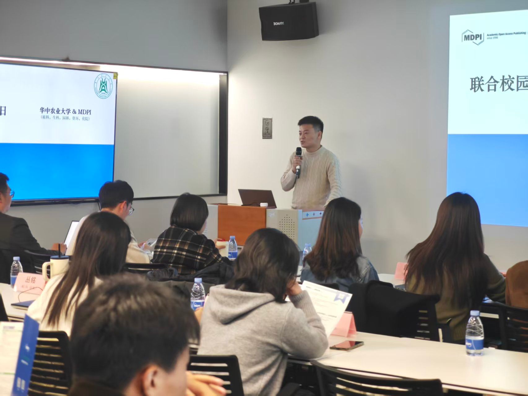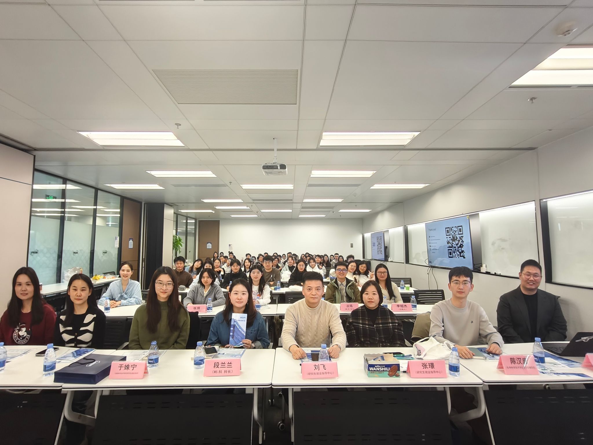 公司全面介绍了MDPI发展历程、组织结构、福利待遇等方面,并详细解读热招岗位及晋升通道。通过入职半年、三年以及九年的三位不同梯度员工的经验分享,包括日常工作内容、晋升路径、工作体验等内容,与会同学明晰了入职公司后的成长路径。期间还穿插了多轮趣味问题互动,同学们积极参与,现场氛围十分活跃。