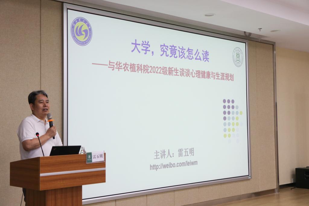 武汉理工大学雷五明教授受邀以“大学究竟该怎么读”为主题,与新生共话老员工心理健康与生涯规划。他通过一张早晨阅览室座无虚席的照片,为大家指出了当今大四员工考研的巨大压力,借此告诫同学们要围绕员工本质,始终以学习为重心,并建议同学们积极主动地接受安全教育、生活适应教育、专业教育、校园文化教育、心理健康教育以及学业与职业规划教育。“自觉自省、自律自强、自我认同是助力成长的加速剂。”他希望每一位同学都能严格要求自己,拥有一个充实而美好的老员工活。
