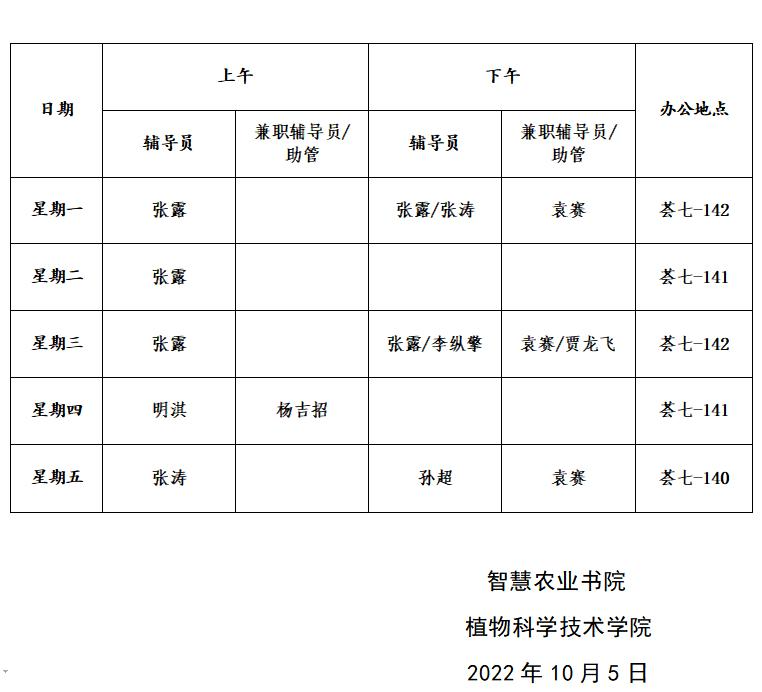 智慧农业书院10月值班安排