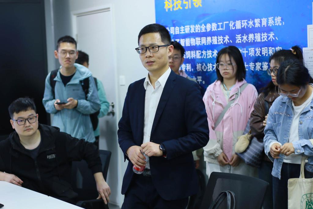 参观后,同学们纷纷向工作人员请教。针对“如何保证水质监测系统的可靠性”这一问题,中科瑞渔人事经理王文玉表示,水质检测是一项长期的工作,为了保证检测数据精准,会在设备检测的基础上安排人工进行取样检测来确保准确性。“工厂化特色智慧渔业养殖不仅局限于产业价值,更要服务生态环境,体现生态价值,还需要做好疾病防治等工作,实现绿色可持续生产”,王文玉与同学们分享到。