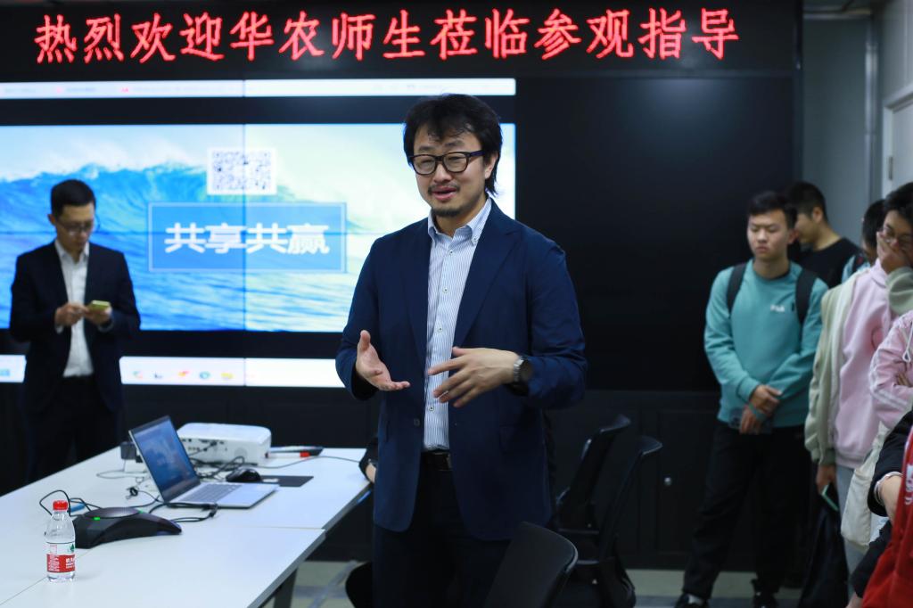 武汉中科瑞渔公司副总经理、中科生态技术中心主任胥贤热烈欢迎书院师生的到来并对公司作简要介绍。胥贤全面分析了我国水产行业的市场规模、产业现状、产业价值和生态价值并详细介绍了该公司工厂化循环水海鲜陆养系统的建设与运用。他指出,工厂化养殖相较于传统渔场养殖具有高养殖密度、高度可控性、高效节约性、低污染性等优势,瞄准“智慧渔业=循环水设备+智能物联+数字化”目标,以设施化、规模化、数字化、智能化为核心的智慧渔业是未来的必然发展趋势。