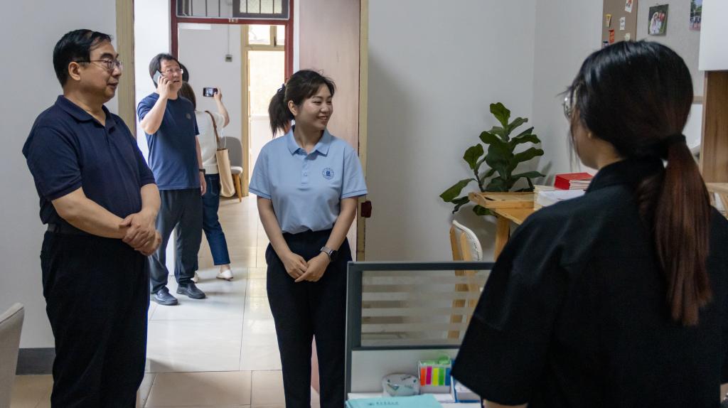 王英一行先后参观了员工驿站、辅导员值班室、图书角、24h自习室、问学斋等,详细了解了辅导员“五同”工作传统、智慧农业书院的运行模式和育人成效,围绕员工社区建设、宿舍安全管理等内容进行了深入交流。