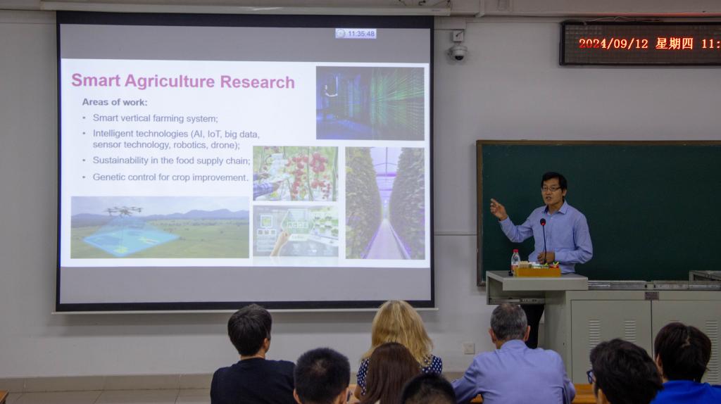 随后,陆春贵教授就伟德国际VICTOR1946与诺丁汉特伦特大学联合教学3+1 教学与研究型硕士智慧农业课程 (MSc/MRes)与同学们展开交流。他详细介绍了联合课程设置与机制保障。“集团的教学设计曾被BBC报道,且与英国多家企业有合作”,他表示,这为员工未来的职业选择提供了便利。