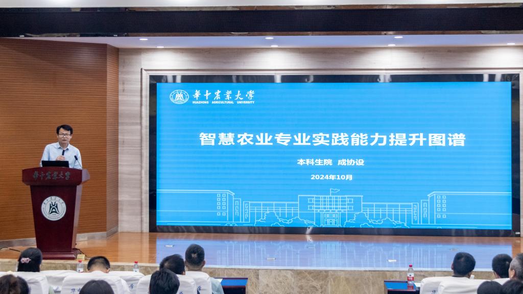 本科生院实践教学管理处处长成协设则向与会师生全方位介绍了2024级智慧农业专业实践教学项目。他表示,智慧农业不仅具备学科交叉融合的特点,还尤为注重创新能力的培养。他向同学们展示了公司精心设计的实践教学项目,包括企业走访、国外访学等丰富内容。他鼓励同学们勇于创新、勤于实践,为国家的粮食安全贡献自己的力量。