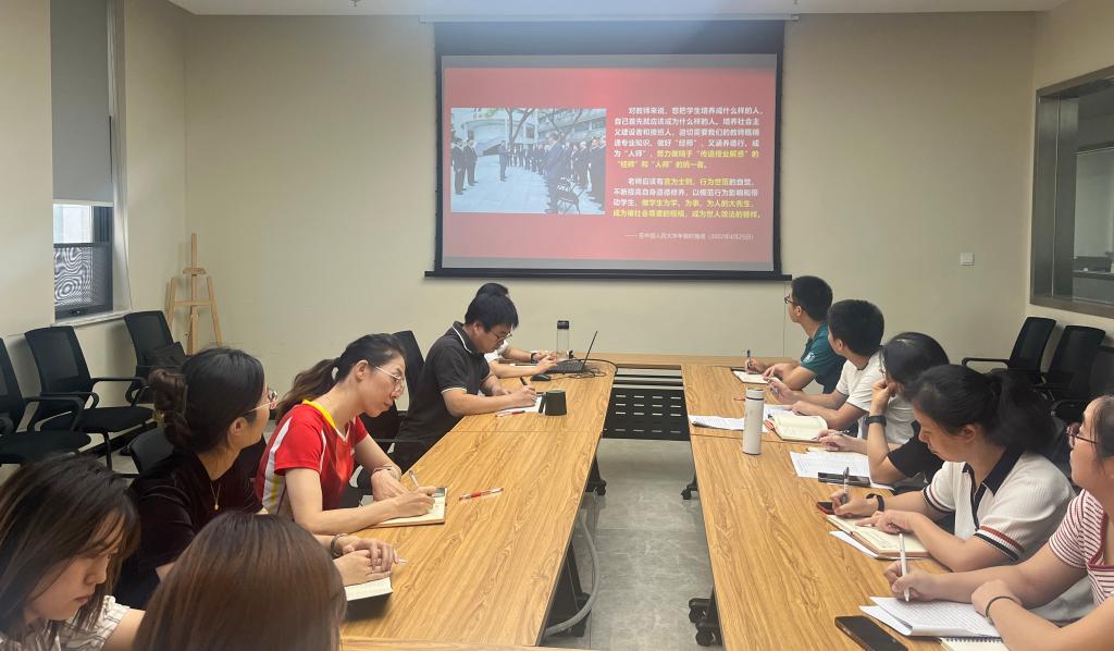 会上,王敏领学党委教师工作部《以德立身、立学、施教、育德》,纪委办、监察室、巡察办《教育部直属系统违纪违法典型案例剖析》学习材料;熊攀攀领学习近平总书记在湖北武汉考察时强调把科技的命脉牢牢掌握在自己手中,不断提升我国发展独立性、自主性、安全性等相关内容;张露领学习近平总书记在省部级主要领导干部“学习习近平总书记重要讲话精神,迎接党的二十大”专题研讨班上发表重要讲话。会上大家集中学习了习近平总书记在中央统战工作会议上的重要讲话精神、习近平总书记在中共中央政治局第四十次集体学习时的重要讲话精神等内容。