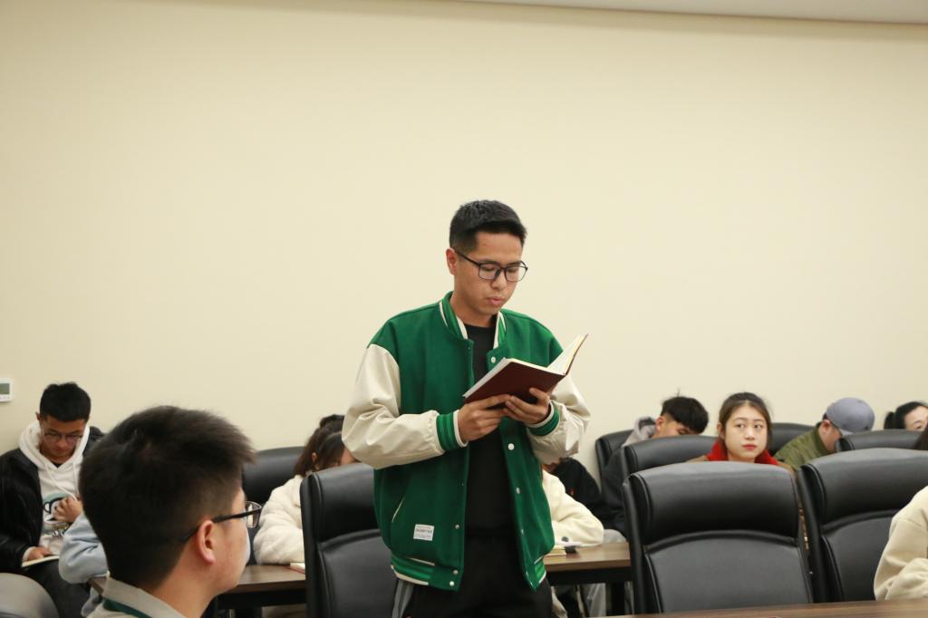 最后,辅导员老师对本次会议进行总结发言。任伟老师对样板例会的形式给与肯定,并针对各支部书记的领学提出相关建议:“时政领学应该结合实际情况以及相应事例,使党课更加生动有趣,加深党员同志们对会议精神的理解与领悟。”熊攀攀老师期望从改革会议模式、贯彻重要精神、创新活动形式三个方面改善支部的党建活动,他谈到:“党支部书记作为党组织建设的神经末梢,要不断加强思想淬炼、政治历练、实践锻炼和专业训练,为真正推进中国式农业现代化进程,贡献出一份力量”。