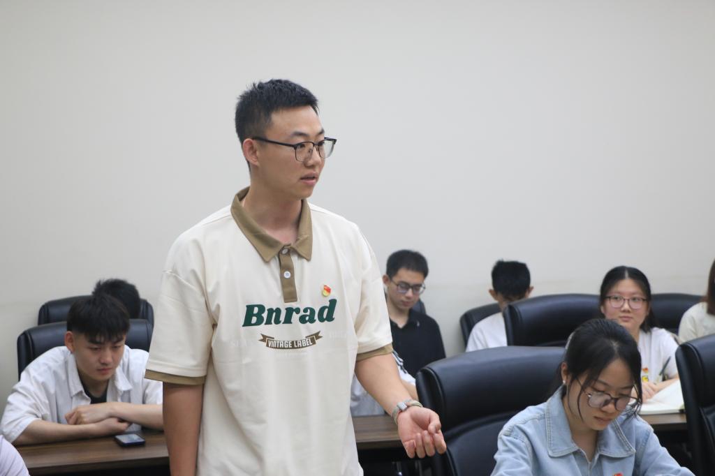 作物遗传育种专业研究生第二党支部书记操雄豪、农药专业研究生党支部书记郭虎和智慧农业第一党支部书记董笑宁分享感悟与心得。