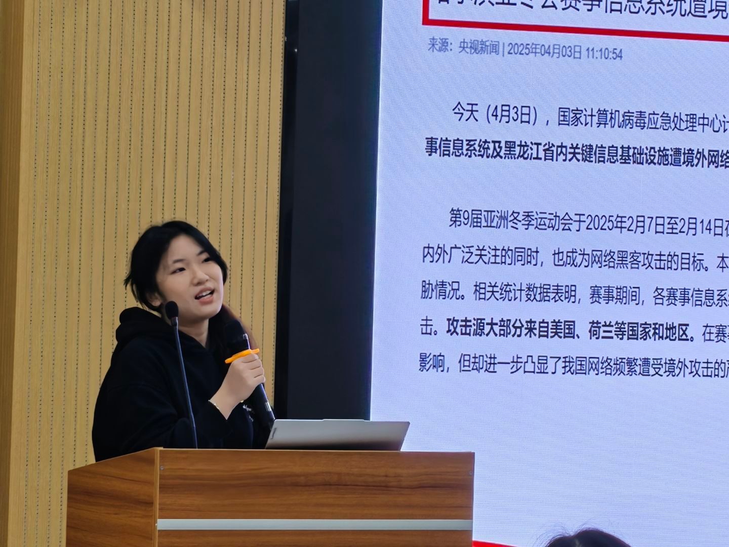 “网络生态治理是网络强国建设的重要任务,事关国家发展安全和人民群众切身利益”,本科生植物科学与技术专业党支部书记王晶晶领学习近平总书记在第二十届中共中央政治局第二十三次集体学习中关于网络生态治理的重要讲话精神。“我们要主动清朗网络空间,积极传播科学、健康的网络内容,在网上网下同步展现新时代青年的责任担当。”